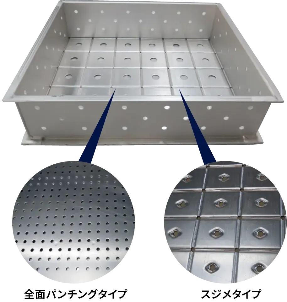 - 板の種類はご要望に応じてスジメタイプ・パンチングタイプにて製作致します。